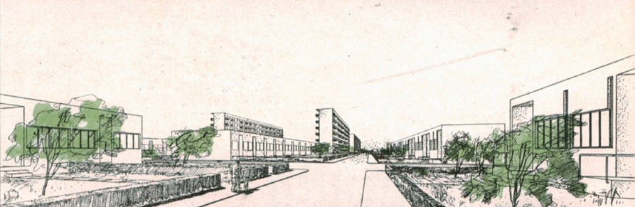 Nel 1938, Giuseppe Terragni ed Alberto Sartoris redigono un progetto di quartiere operaio satellite a Rebbio, Como (da “ Costruzioni - Casabella”, n. 158, febbraio 1941)